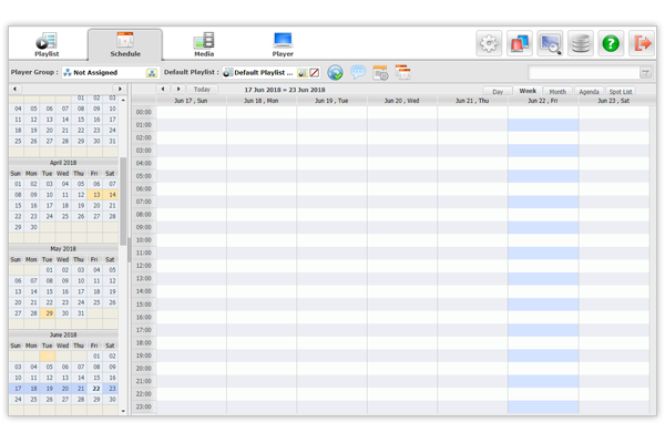 WebDT Content Manager software is one of the primary components in the comprehensive WebDT Signage System. WebDT Content Manager's web-based server software provides central management of WebDT signage appliances as media players, and automates the design and distribution of a wide variety of multi-media file formats into playlists. Playlists are then set into schedules and stored in a central database for distribution to the network of digital signage displays. With WebDT Content Manager, the message to be played is assembled, scheduled, and delivered for dynamic playback over a network of digital signage appliances using standard file formats and protocols.